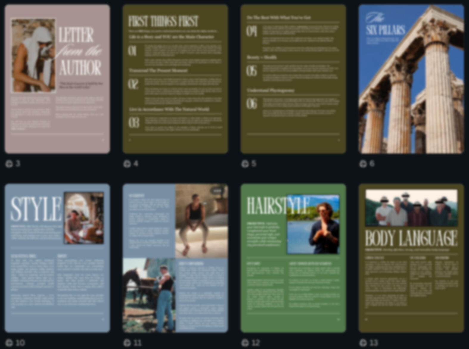 A collection of my most trusted works, dedicated to redefining how men and women show up in the world.From private mentorship and thought-provoking digital literature to real-world immersion and experiences, the Collective exists to raise standards across every dimension of life.This is not self-improvement.This is intentional, integrated, alignment... guided by divine truth, natural law, and embodied experience.